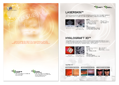 XX바이오테크에서 만든 세포지지체인지 먼지를 소개하는 전단입니다.