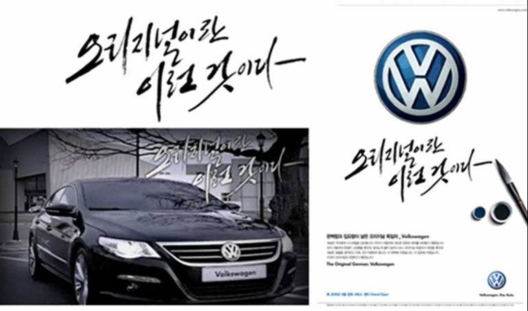 오리지널이란 이런 것이다폭스바겐 지면 광고카피캘리그라피_손수본 글씨의 저작권은 작가 김형균에게 있습니다. 작가와 제작회사의 사전 허락없이 일부 또는 전체를 변형 복사하여 이미지를 무단사용할 경우, 저작권법에 의해 민형사상의 책임을 지게 됩니다