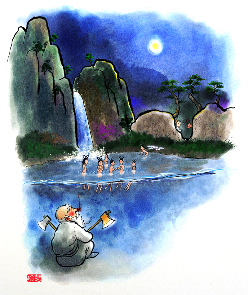 나무꾼은 코피를 흘리지 않습니다. 잠수해 있는 산신령님만 흘릴뿐입니다... ㅋㅋ? 정말 위트 가득한 그림입니다. 따분이 시간보내는 중에 명랑님 덕분에 웃고 갑니다. 고맙습니다. ^^*