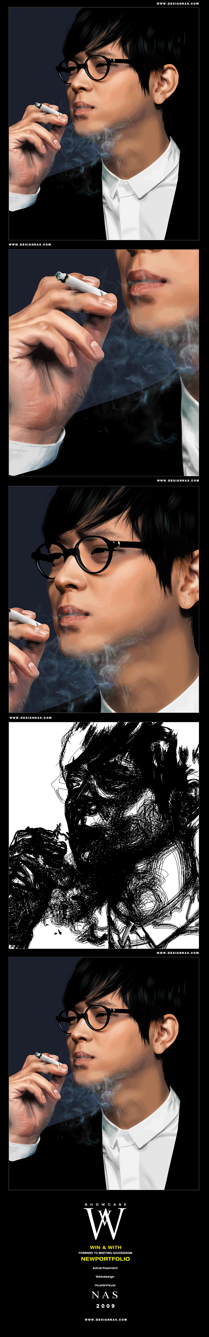 표현된 담배연기 또한 면으로만 표현되었습니다.