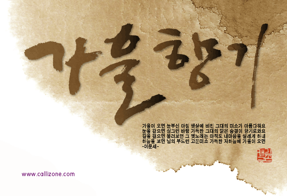 [직접쓴 캘리} 가을향기 callizone 일반 1 9559 2007.10.02 14:07 http://www.callizone.com/home/index.php + 578 가을이 익어가고 있습니다. 가을을 음미하면서 한번 만들어 보았습니다. 회원님들 감기조심 하세요^^