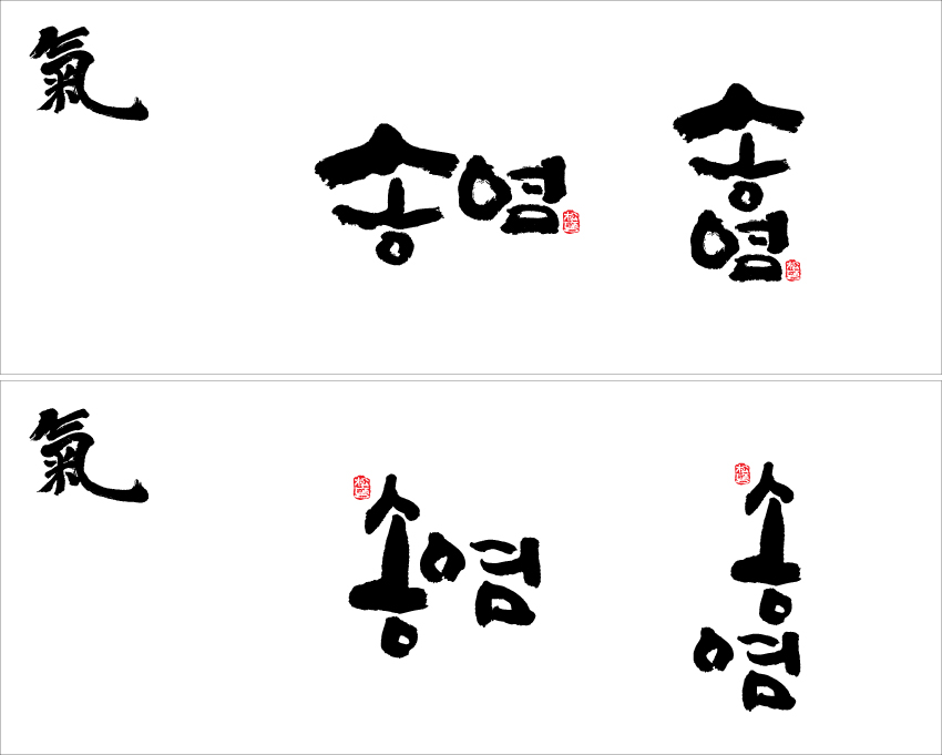 ★ 캘리좀 부탁드립니다. ★ 박현명 일반 2 9261 2010.08.19 14:57 -0001.11.30 00:00 송염.ai (0byte) + 33 하루지났는데도 아무도 안올리길래 눈치봐서 올려봅니다 ㅋ 제꺼 쓰면서 같이 써봤네요. 레이아웃을 같이해야되는지 따로해야되는지 몰라서... 따로따로 써서 올립니다. 알아서 조합하시길...
