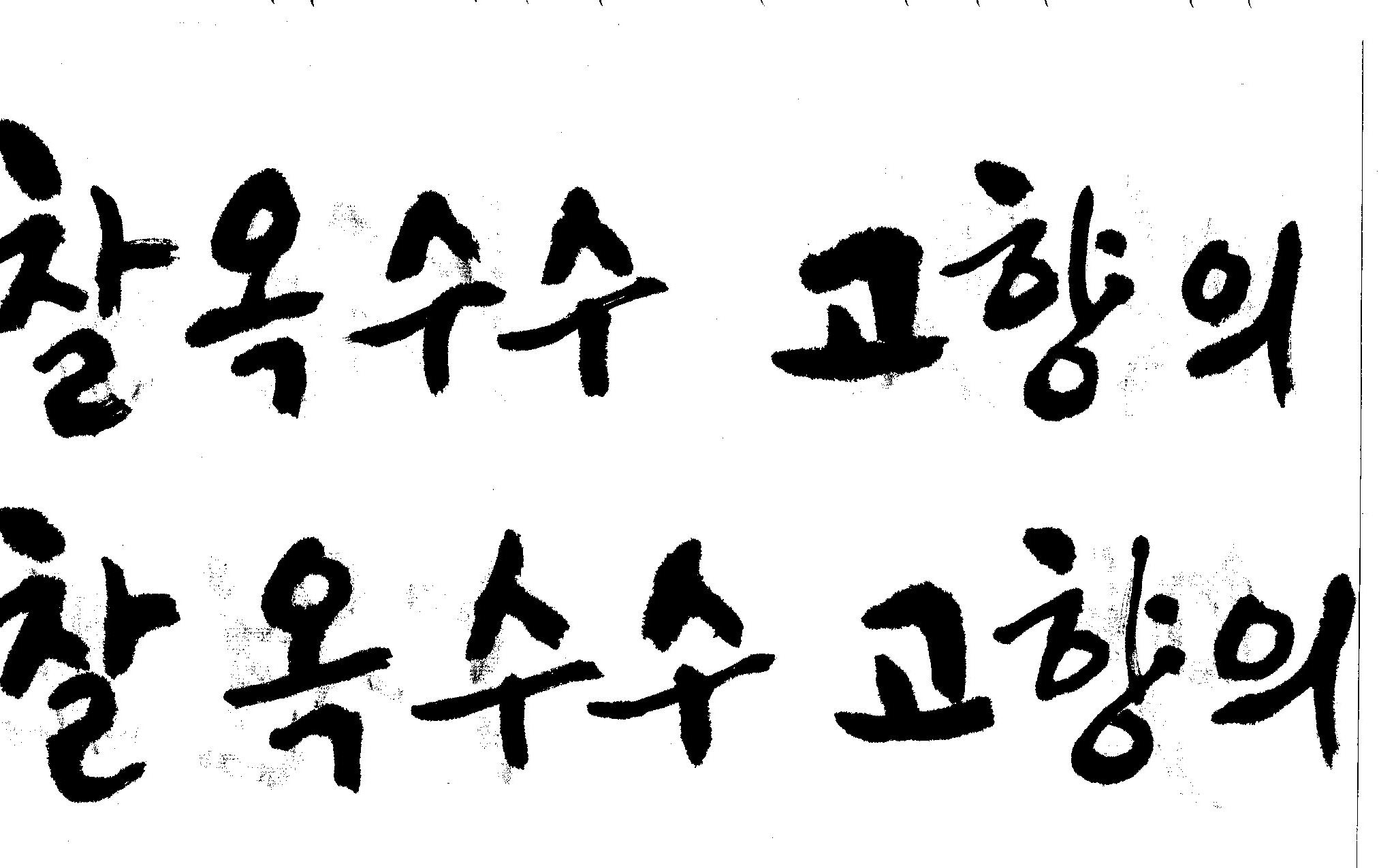 캘리고수님.. 캘리 부탁드립니다. 김철호 일반 1 11349 2008.10.31 15:44 > > 강원도 > 찰옥수수 > 고향의 맛 > > 이상의 문구 입니다. > 캘리 고수님들 시간되시면 도움 부탁드립니다.. > 유용하게 쓰시길 , 스캔이 깨끗하지 못해서 수고 좀 하셔야 겠네요.. "맛"이 라는 글자가 잘 않나와서 따로 올립니다.