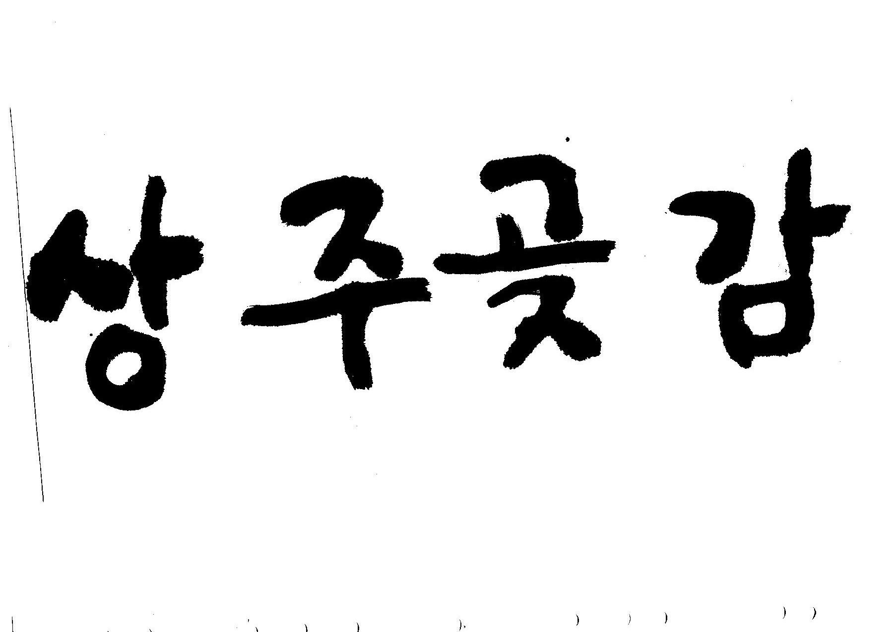 > 이글은 맛난 느낌도 좋겠지만, 상주농민의 순수하고 진정성 있는 정성이 담긴 우리의 좋은 먹거리라는, 우직한 느낌으로 썼습니다...생각이 그렇다는 말이죠 ㅋㅋㅋ..글에는 이런 뜻이 담겼는지는 보는분 알아서 평가하십시요..완성도가 떨어져서 아쉽지만 그래도 유용하게쓰시길 ..편집하실때 "상"자의 "ㅅ"부분 오른쪽 점획이 먹이 많이번져 있기 때문에 약간 작게 수정을 하시면 좋을것 같네요, 원본은 스캔을 위해 글간 간격을 무시한는 경우가 많습니다 알아서 편집하시길..