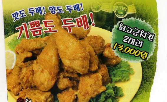 치킨 바탕에 깔린 풀같은 이미지있으신분