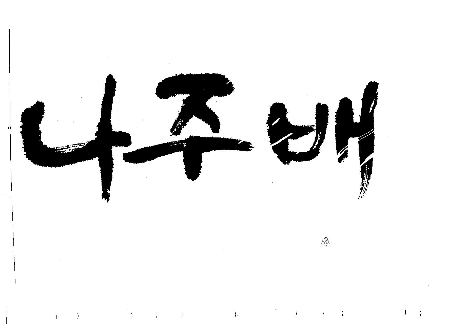 캘리부탁드려도 될까요? >나주배 김철호 일반 0 13205 2009.07.18 10:54 > > > > > 추석용 배 패키지에 쓰일 > > > > <나주 배> 캘리 부탁드려도 될까요? > > > > 화선지 깔고 먹으로 써봤는데 > > > > 아무리 아무리 써도 허접하네요.. > > > > 도움주시면 감사하겠습니다.^---^: > > > 한 글자만 쓰일 줄 알지만 > 한 글자 마져도 버려 질 수도 있지만 > 나주배의 시원한 단맛을 생각하면 썼습니다. >